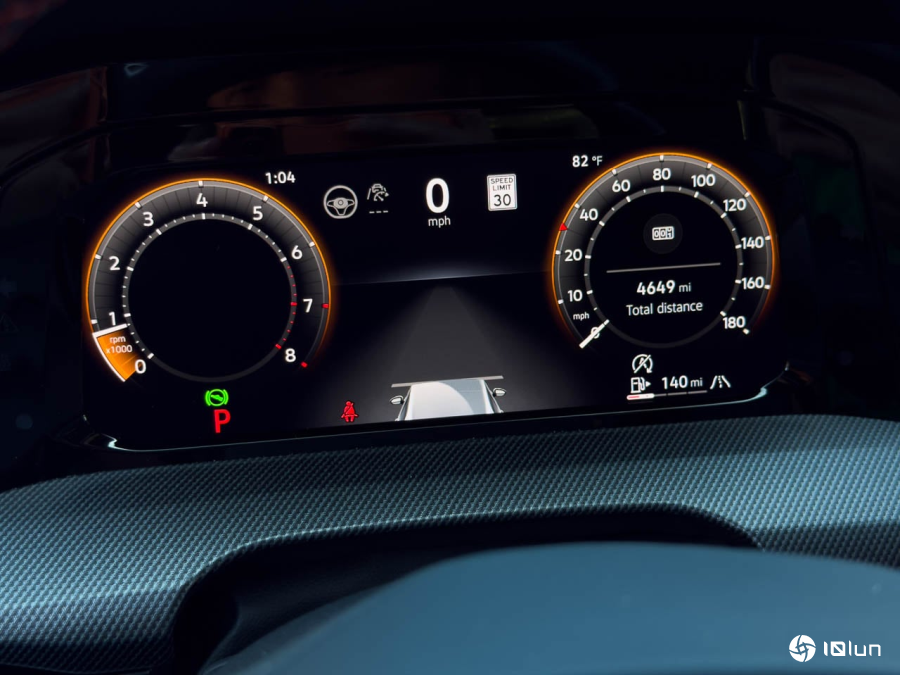 克拉克格子座椅值得单独论述。这一纺织图案自1976年以来出现在每一代GTI上,它的延续代表的已超越品牌一致性。织纹本身讲述了大众对性能座椅需求的理解侧向受力时的抓握、温度变化下的透气、使用后更耐用而非退化。靠背泡沫密度比普通运动布更硬,形状旨在包容而非压迫乘客。黑灰线交叉的角度随光线变化呈现不同的光影,即使车辆静止也有视觉动感。我们在从达拉斯到奥斯汀的四小时高速行驶后,座椅没有出现任何压点疲劳,这一点是许多皮革座椅难以做到的。它是功能性的传承,而非怀旧情怀。格子之所以有效,是因为它解决的问题从未改变。