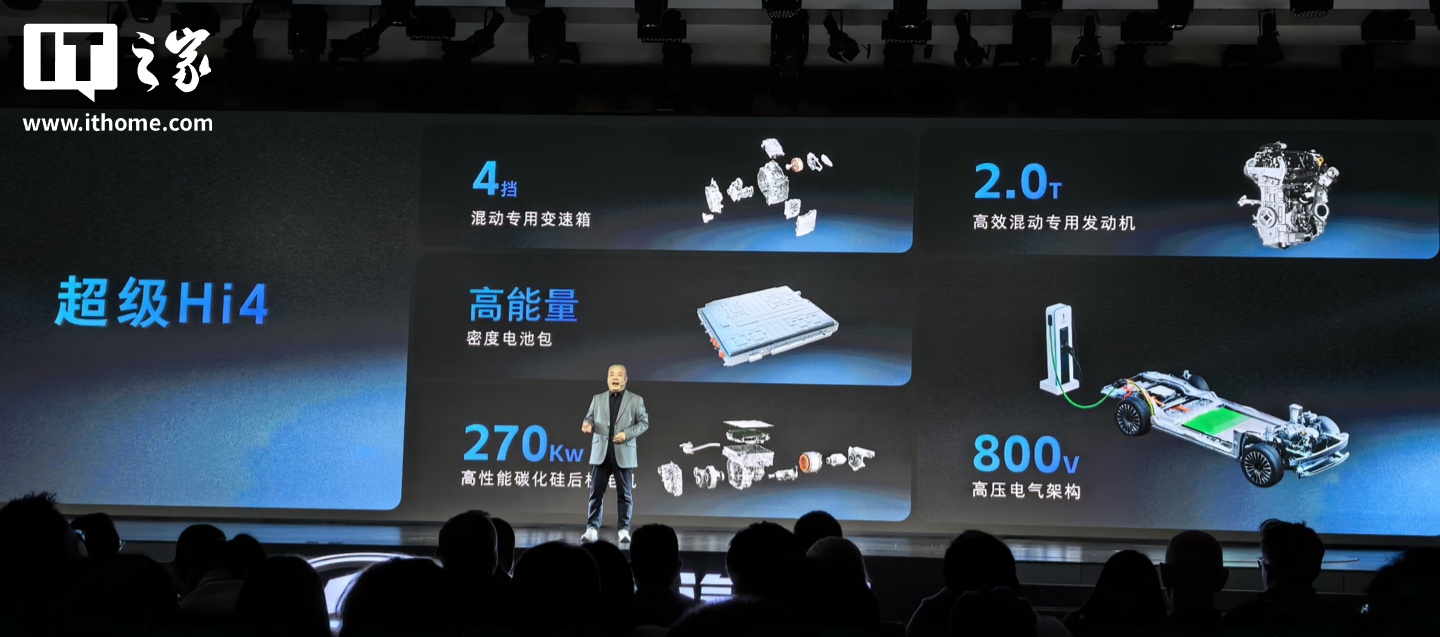 在“归元”平台加持下,Hi-4 技术再升级,支持前后双电机 + 混联 + 多挡,其采用 4 挡混动专用变速箱、2.0T 高效混动专用发动机、800V 高压电气架构、高能量密度电池包、270kW 高性能碳化硅电机。另外,长城汽车还宣布了个好消息,将推出颠覆性的柴油混动技术。
