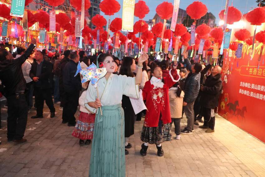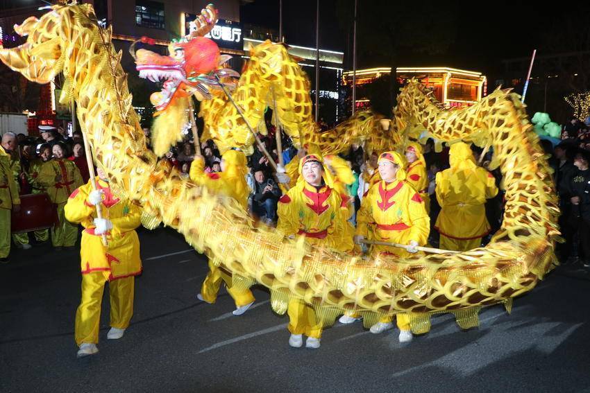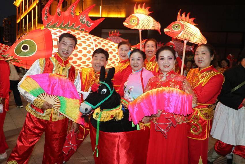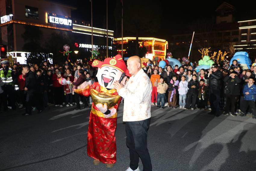 国风花灯秀,一秒穿越古今,龙狮劲舞,民俗巡游大联欢。从水务集团到洪广广场再到才智广场,道路两旁、树枝之上挂满主题花灯。夜幕降临,万灯齐亮,市民仿佛漫步在光影交错的古意长廊。地道的舞龙、舞狮、采莲船、蚌壳精、连厢舞、马车舞、财神爷、毕昇妙音、鱼灯、元宵灯谜应有尽有,还有毕昇活字印刷体验,人头攒动、人山人海,一场集民俗、国潮、趣味、互动于一体的元宵文化盛宴吸引成千上万的市民前来观看,现场人潮涌动,热闹非凡。(湖北日报客户端通讯员 付向阳)