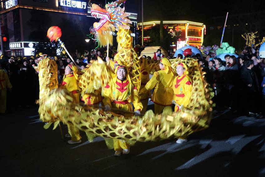 3月3日,锣鼓喧天辞旧岁,龙狮欢腾闹元宵。东坡庙会“龙狮闹元宵 国风花灯秀”在英山县洪广毕昇温泉度假村璀璨登场。